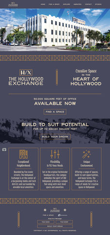 This website was designed for a commercial real estate firm, BLT Enterprises. It consists of a design for one of BLT's properties called the Hollywood Exchange. The design of the site reflects the old Hollywood era branding identity.